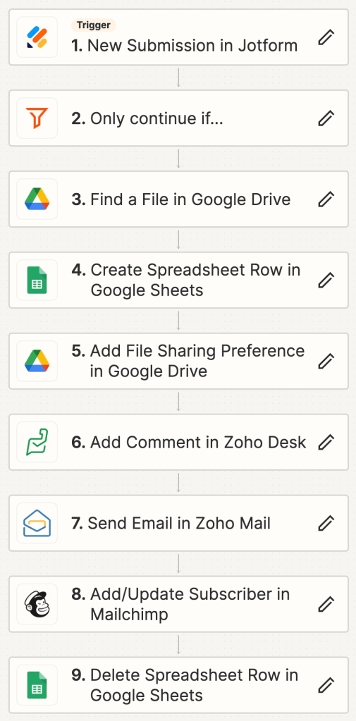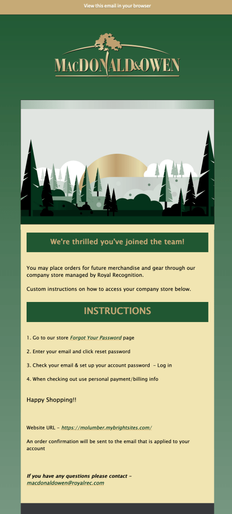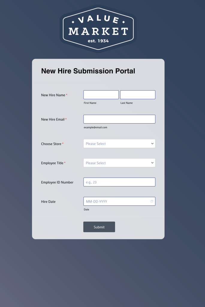 I created company branded forms in which they “submit” their new hires. The automation I set up then takes their submission, creates an internal ticket entry, sends a email to the company new hire, and then creates a CSV file for us to upload into our E-Commerce platform.