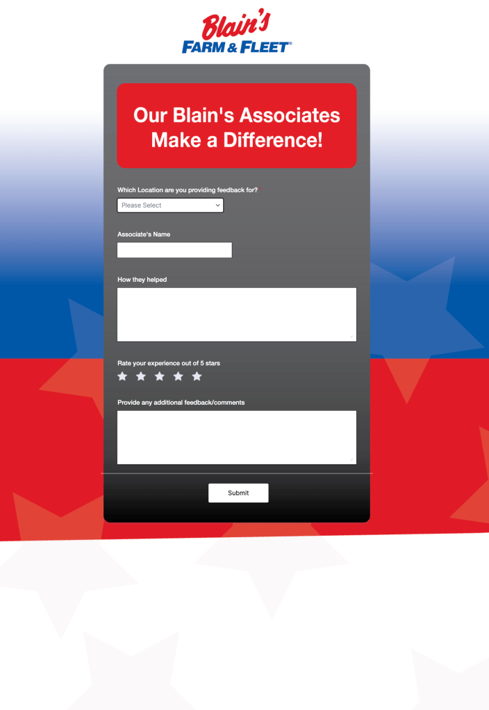 The form will automatically send submissions to the respective store managers and filter into a custom dashboard so Blain’s can improve customer experience.